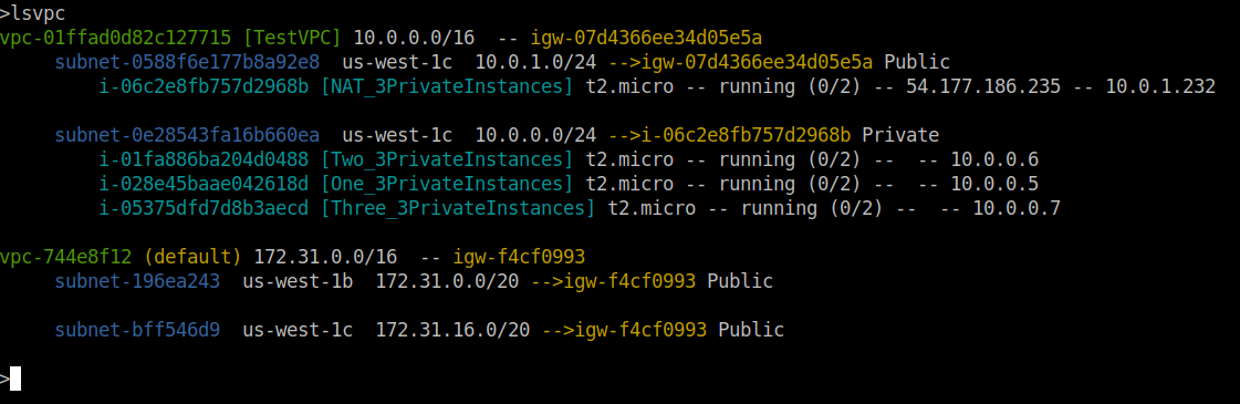 What's missing is a simple command line utility that quickly displays a terse layout of a VPC to rapidly reason about. That is why I wrote lsvpc.